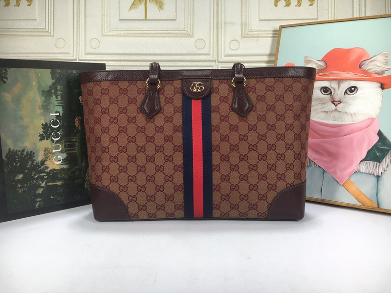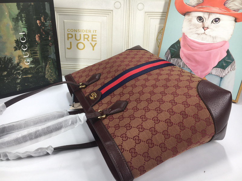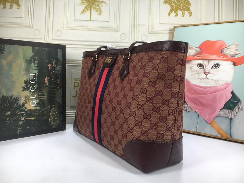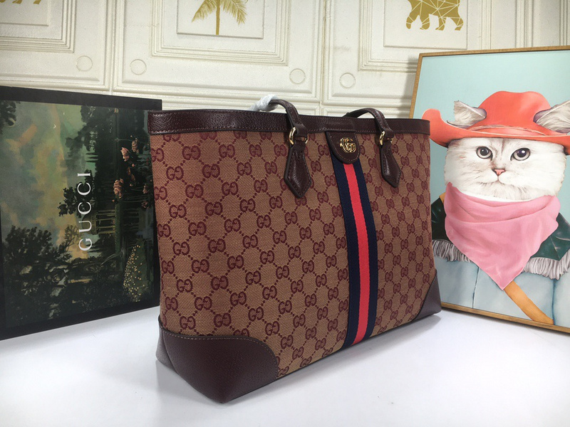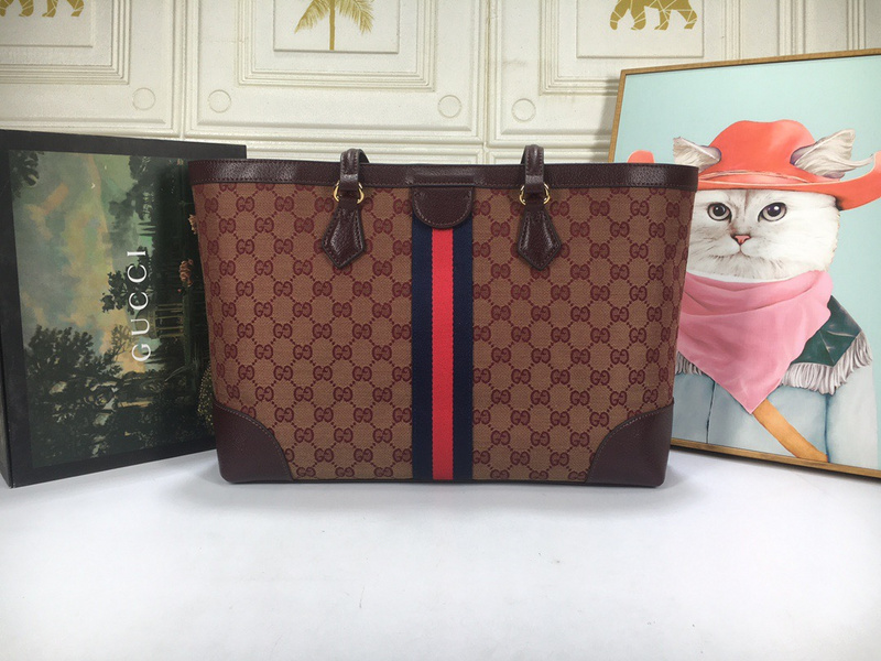 Gucci Wine Red Canvas Tote Bag Women’s Bags with Red/Green Stripe