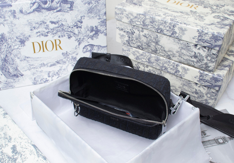 Dior Men’s Graffiti Canvas Messenger Bag with Leather Trim Black
