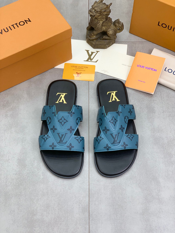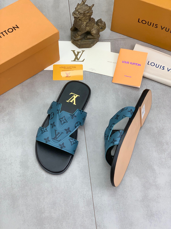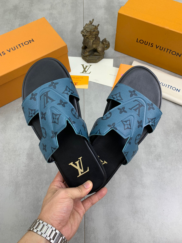 LV Men’s Monogram Leather Slides, Outdoor slipper -3