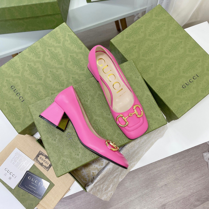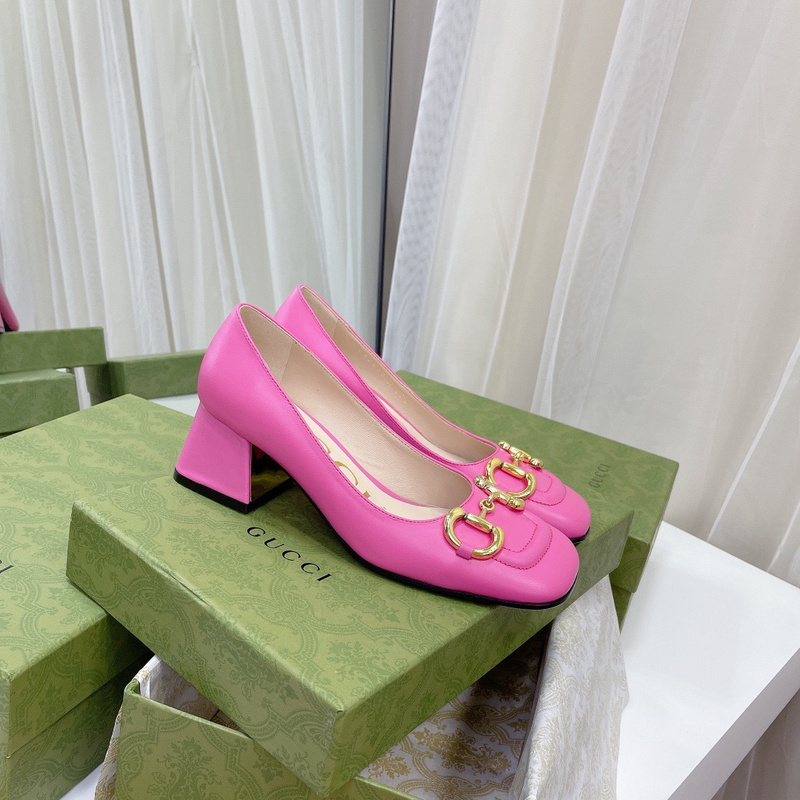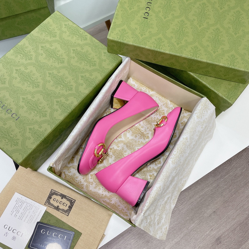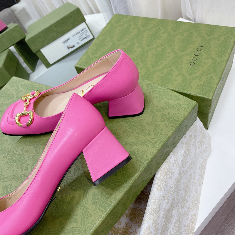 Gucci Women’s Rose Black Leather Pumps, Mid-Heel Pumps