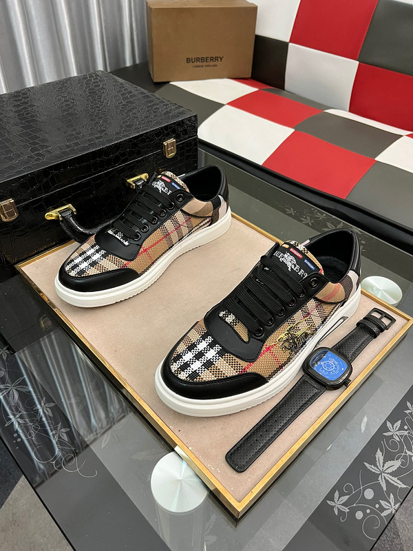 ⌚️⌚️【BURBERRY】巴宝莉休闲运动男鞋,全新米兰时装时尚的设计,完美做工,鞋面巴宝莉布料原版复刻 材质:头层牛皮柔软舒适,加顶级羊皮内里,鞋口特殊材料搭配,凸显出它的潮流,男鞋码数:38–44️色可选 TB906220