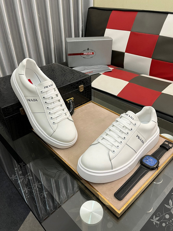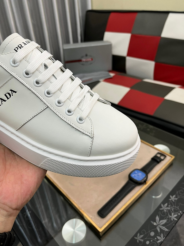 Casual Prada Leather Low-Tops, Men’s Trendy Sneakers White