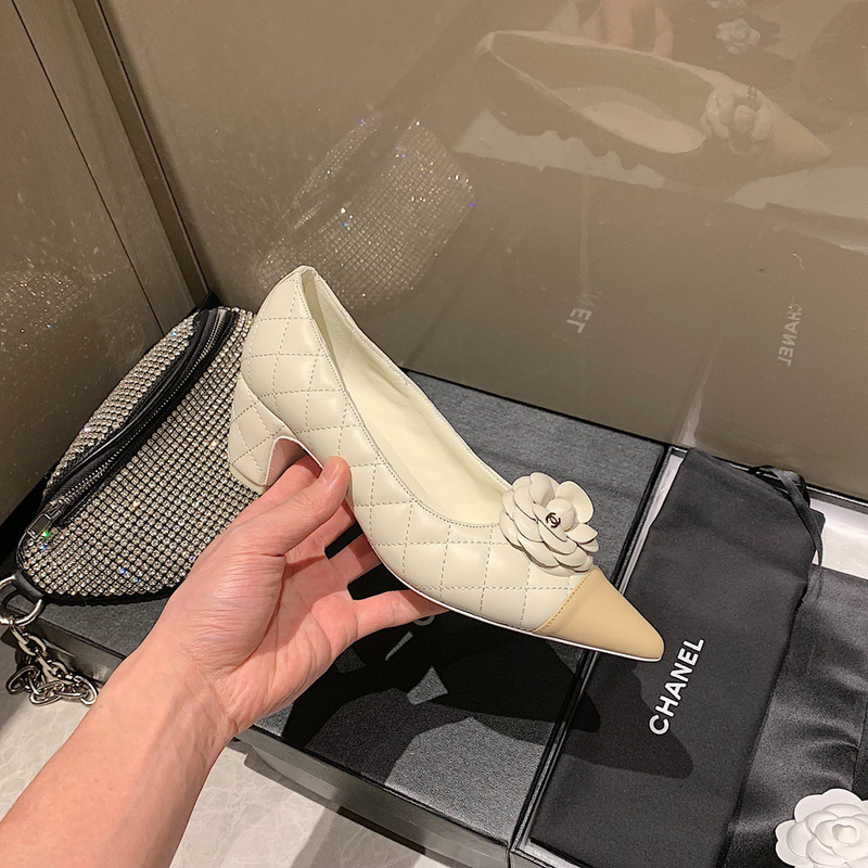 CHANEL 香奈儿 新款菱格山茶花尖头单鞋 香粉闭眼入款!精致优雅的设计,上脚秀气超级耐看型,非常出彩! 定制原版菱格螺纹布/进口山羊皮 内里垫脚顶级混种羊皮 意大利真皮大底 1cm/5cm size:35-39 TX1215310