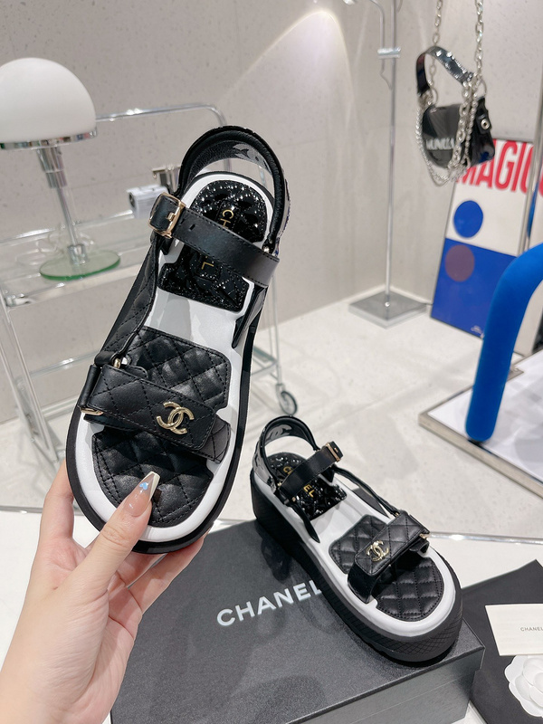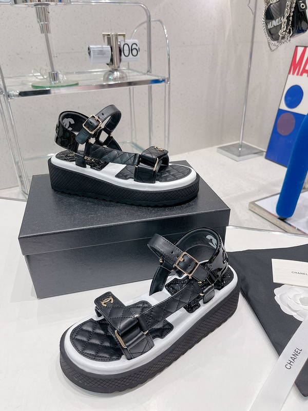 Chanel Platform Sandals, Contrast Color Sandals -2
