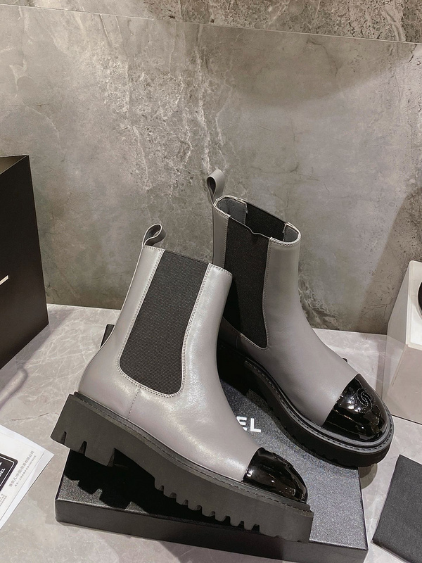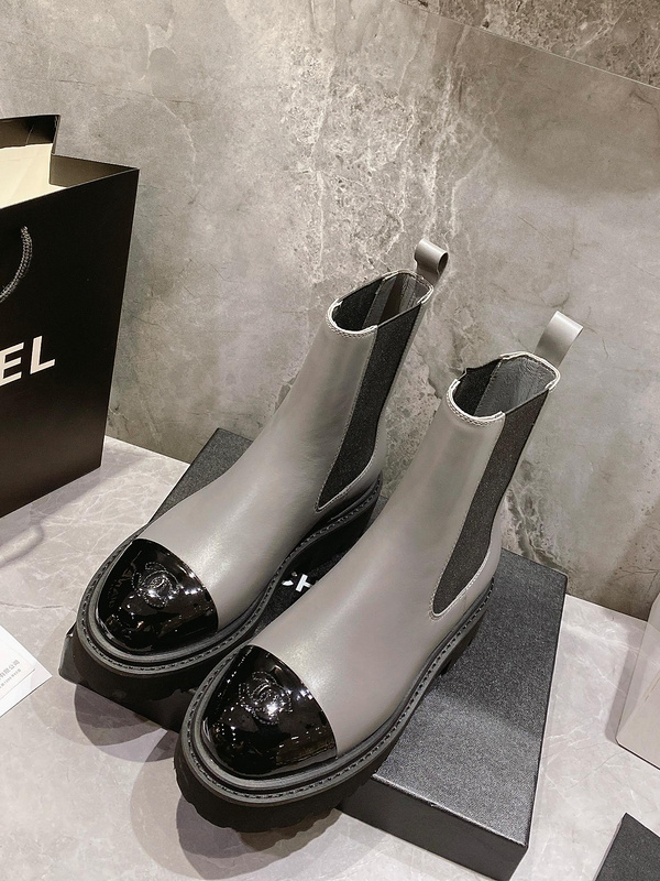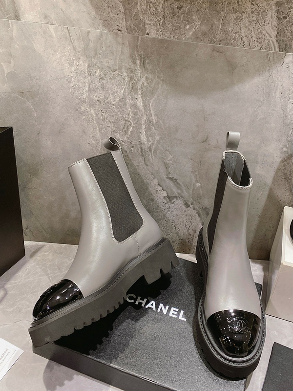新品 香奈儿2022CHANEL官网同步最新款后两边松紧厚底短靴代购级别品质✔原版材料 上脚相当百搭秀气 网红街拍款 香奈儿定制logo 面料/进口小牛皮 &内里/垫脚:进口羊皮 &跟高: 5公分 &筒高:7.5寸 &Size:35–40 TX1352340