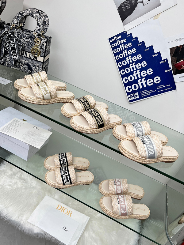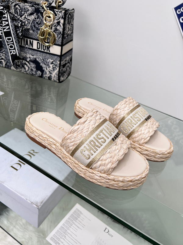 Dior 迪奥,凉拖上新。 米兰周走秀款更新。 原版PP草编制+飞织电绣效果。 内里羊皮。厚底采用轻飘EVA夹层。底后3CM。颜色 黑色,金色,灰色,粉色,杏色, 码数35-41 厚底 TX1274230