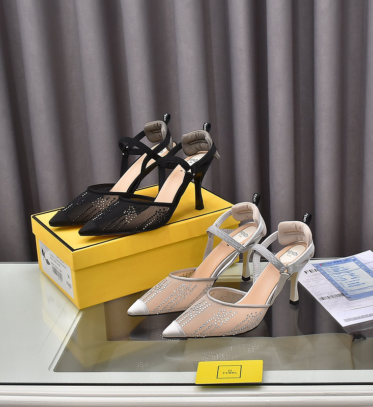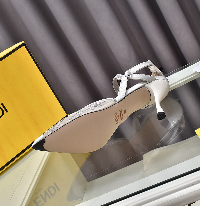 新款Fendi 芬迪高跟8.5/中跟5.5厘米尖头鞋 面料:多拼色,内里/羊皮,大底/橡胶 垫脚:羊皮 尺码:35–42 TX1275260