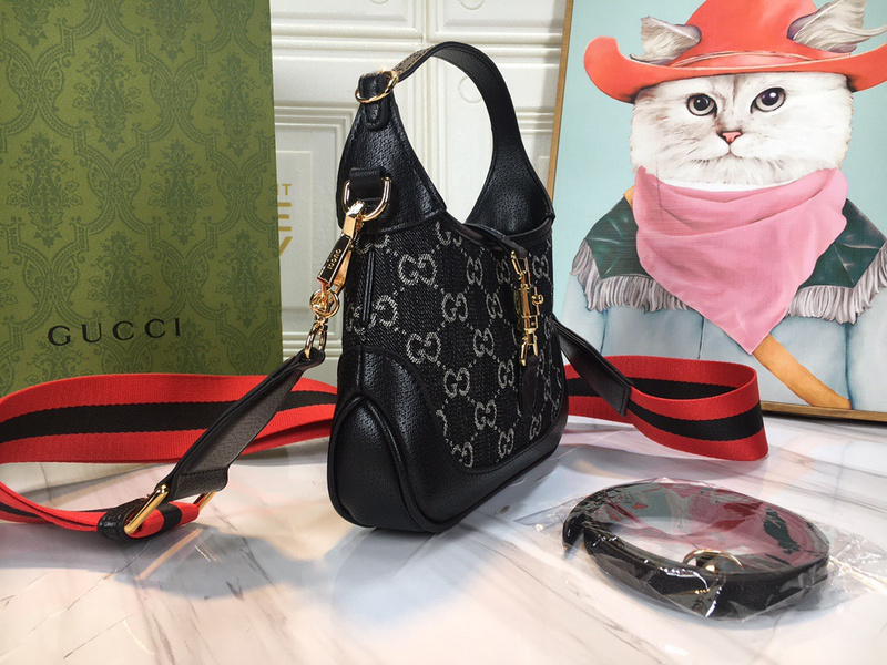 Gucci Black Canvas Mini Hobo Bag with Horsebit