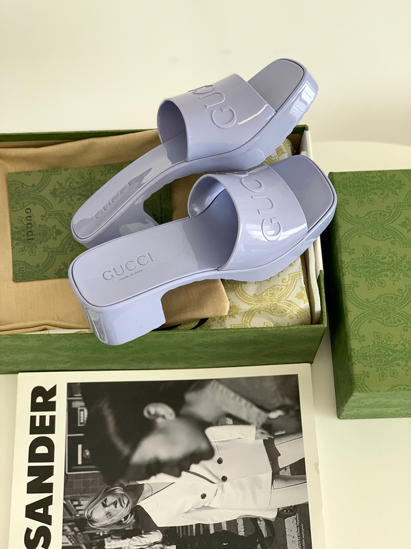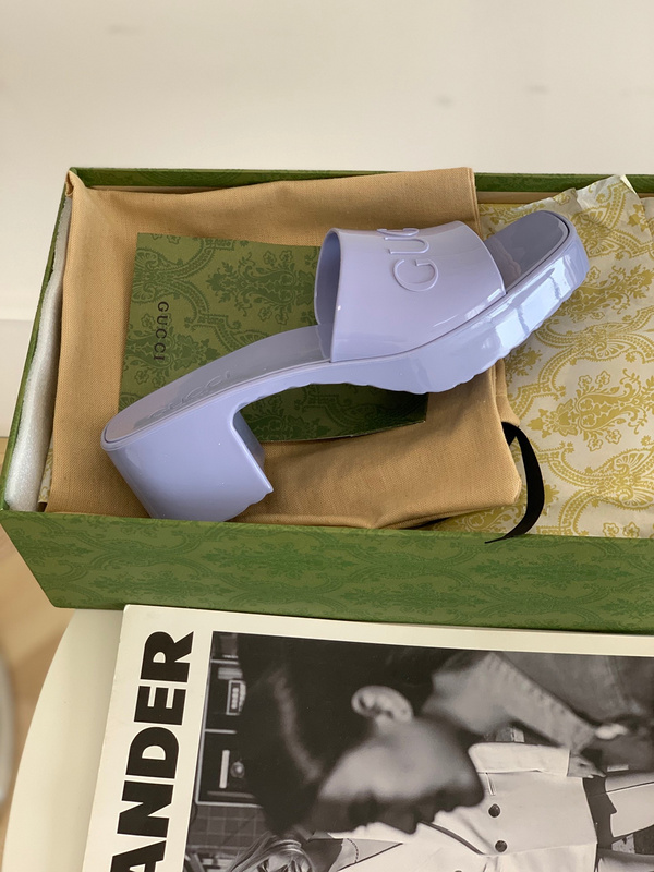.GUCCI新款果冻厚底拖鞋 搭配袜子又是一种风格~可当雨鞋沙滩海边旅游必备 材质:TPU环保材质专柜环保塑胶解性材质最关键的是这次用了PU发泡填充鞋内的设计,穿上脚舒适度百分百 跟高:5.5cm 水台2.2cm (️我们鞋子有香味的 进出专柜无压力,配专柜全套包装) Size: 35–41 长期做货,放心推! TX1135160