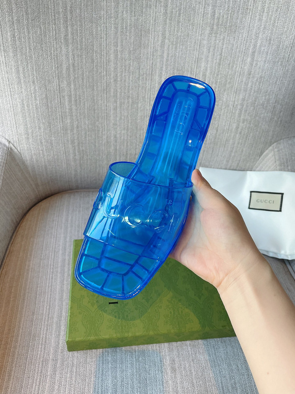 GUCCI新款果冻厚底拖鞋 搭配袜子又是一种风格~可当雨鞋沙滩海边旅游必备 材质:TPU环保材质专柜环保塑胶解性材质最关键的是这次用了PU发泡填充鞋内的设计,穿上脚舒适度百分百 跟高:5.5cm 水台2.2cm (️我们鞋子有香味的 进出专柜无压力,配专柜全套包装) Size: 35–41 长期做货,放心推! TX1135160