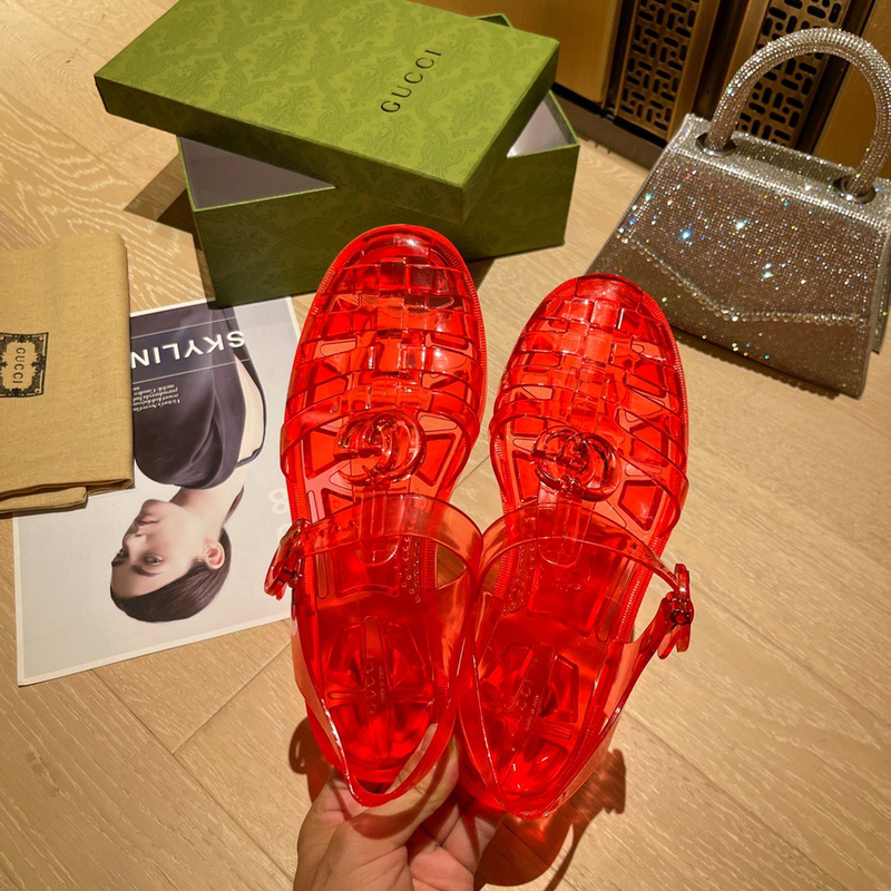 GUCCI 古驰 解放自由风格GG凉鞋,22ss春夏最新款 双G果冻凉鞋 。专柜购买原版 ,所有细节、材料 ,全部跟你在专柜买到的都一样 !模具耗时一个半月,一对鞋子的模具重达1吨!真正能做到和原版一样的晶莹剔透!所有扣子➕五金真正做到和原版一致,欢迎细节对比 其他市场其他版本!!! 6个颜色: 纯黑色、透明白色、透明黑色、透明绿色、透明蓝色、透明红色 码数: 35-41,配全套包装 TX1135190