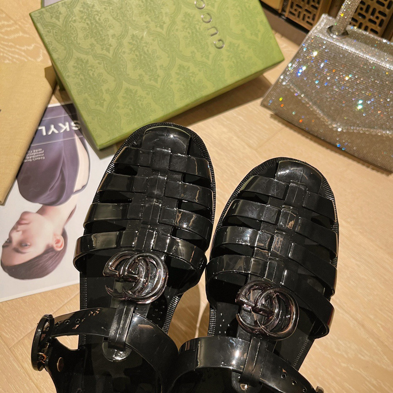 GUCCI 古驰 解放自由风格GG凉鞋,22ss春夏最新款 双G果冻凉鞋 。专柜购买原版 ,所有细节、材料 ,全部跟你在专柜买到的都一样 !模具耗时一个半月,一对鞋子的模具重达1吨!真正能做到和原版一样的晶莹剔透!所有扣子➕五金真正做到和原版一致,欢迎细节对比 其他市场其他版本!!! 6个颜色: 纯黑色、透明白色、透明黑色、透明绿色、透明蓝色、透明红色 码数: 35-41,配全套包装 TX1135190
