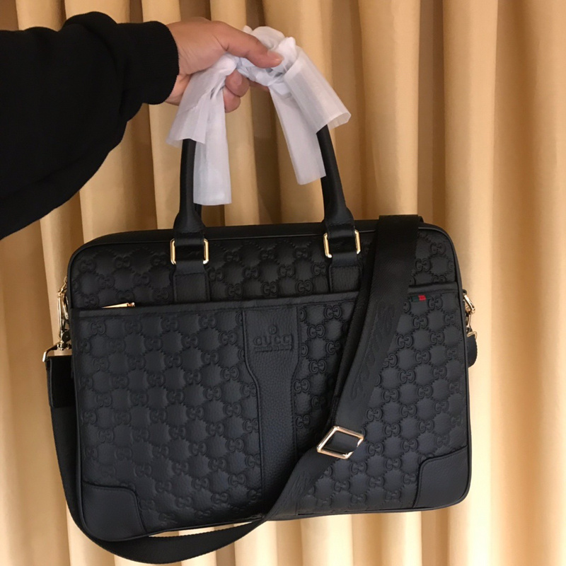 Gucci Men’s Black Leather Briefcase with Web Stripe Classic Design-4