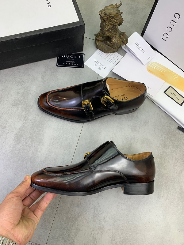 【实价】 水染牛里 【古奇】GUCCI高端男士正装商务皮鞋,顶级原单1:1正品货!原版进口擦色开边珠小牛皮,原版金属饰扣,进口水染牛皮内里垫脚 原版鞋底,男鞋码数:38-45 颜色:️色可选 TB970310