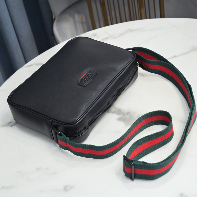 Gucci Men’s Leather Messenger Bag with Web