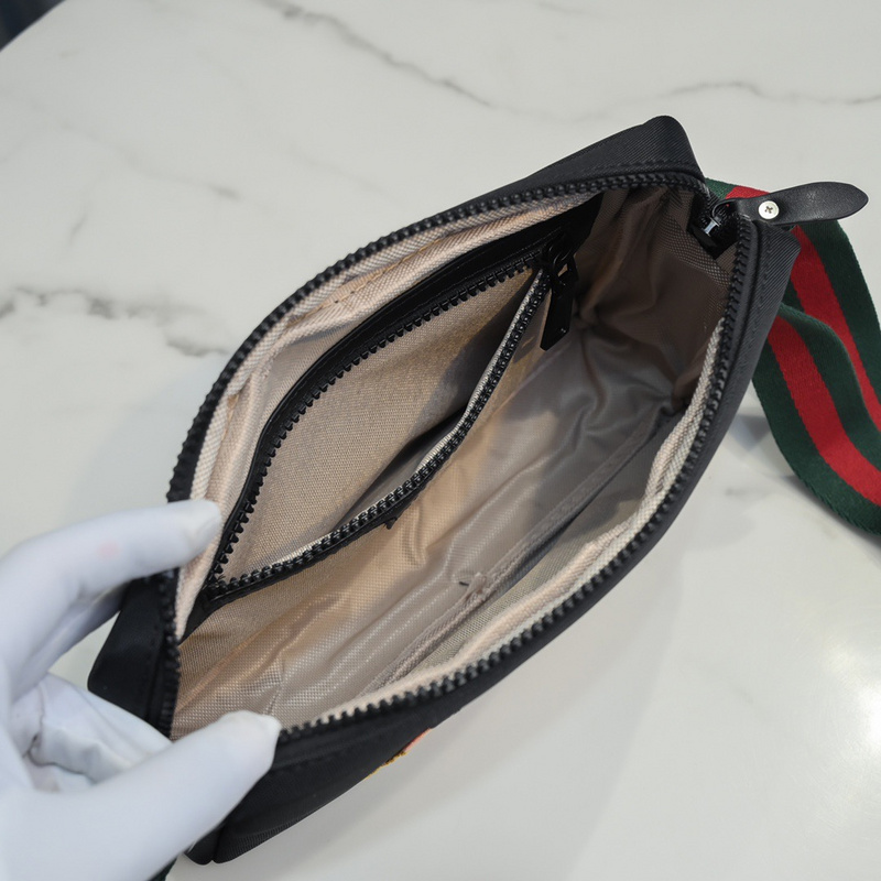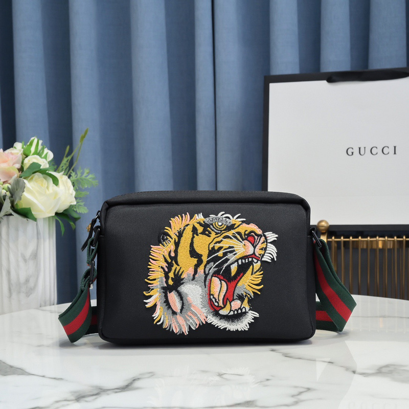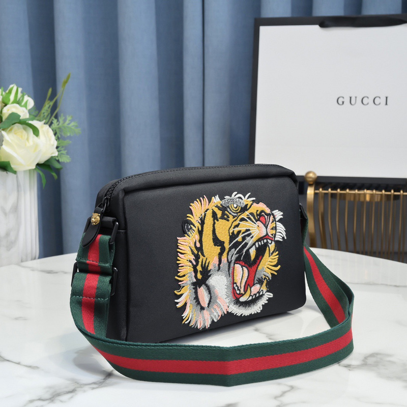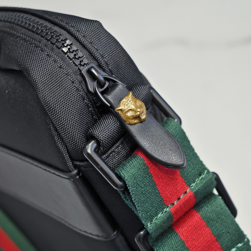 Gucci Tiger Black Leather Bag with Web For Men