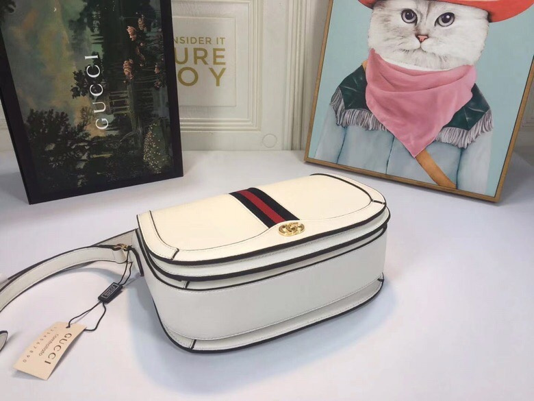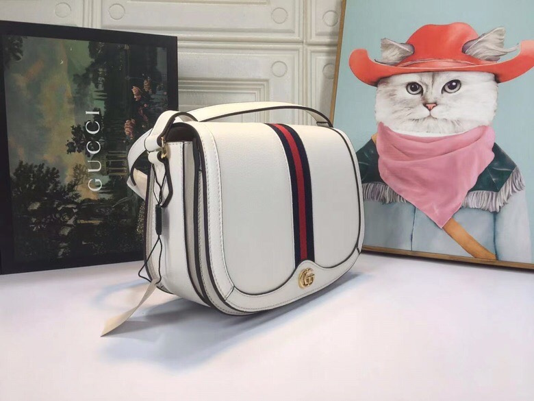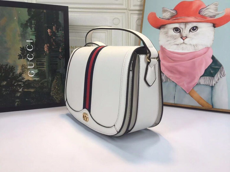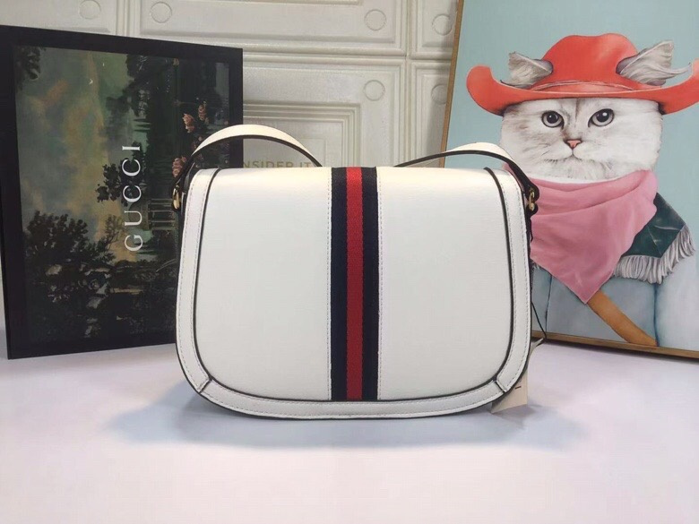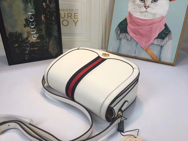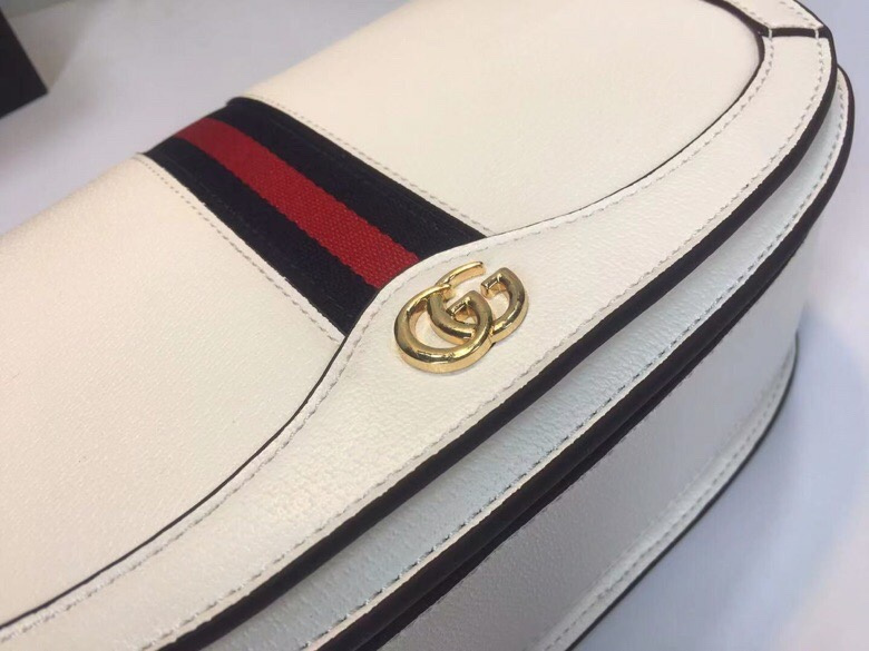 Gucci White Leather Saddle Bag with Web Stripe for Women