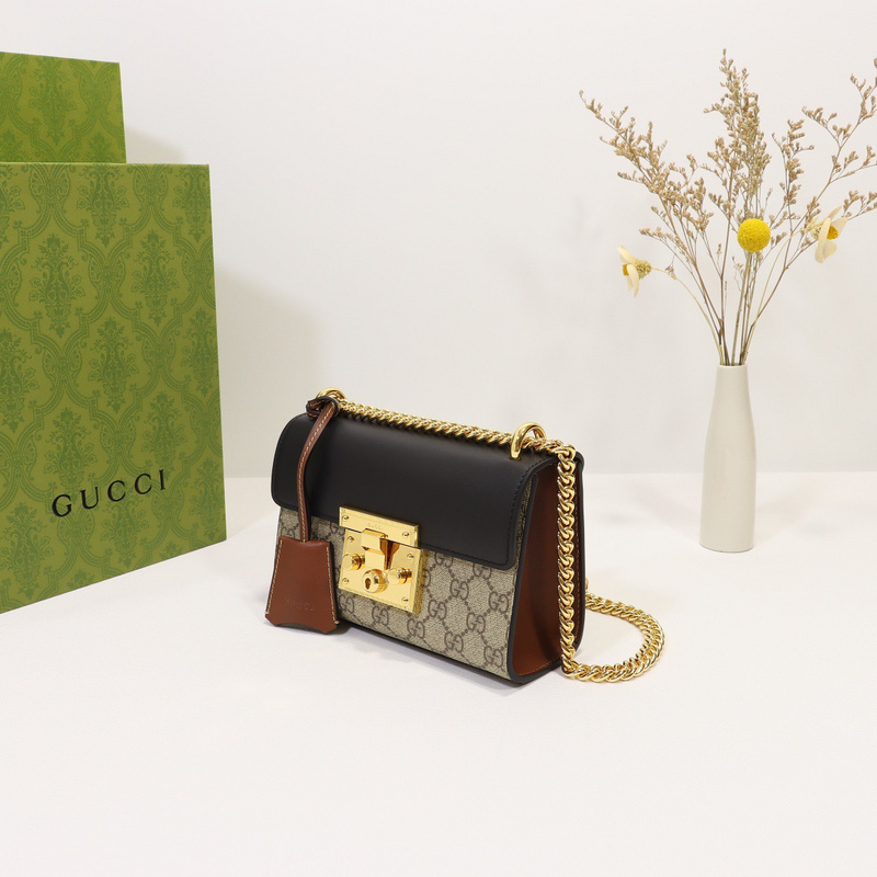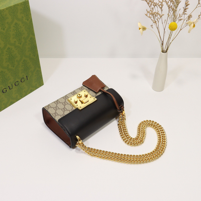 Gucci Women Shoulder Bag Padlock Leather Bag with Flap Closure
