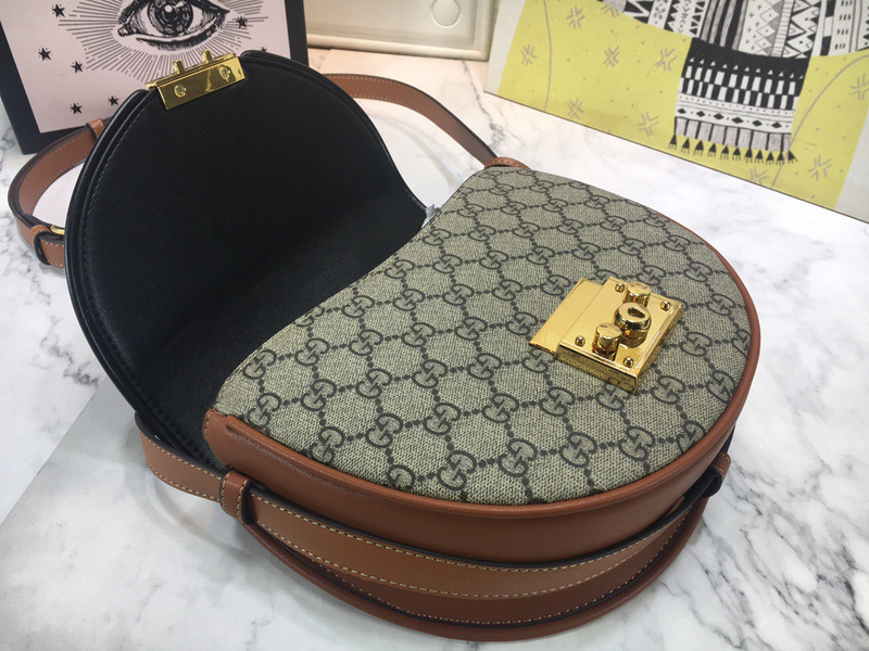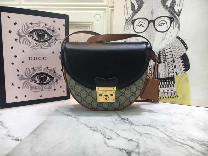 Gucci Women’s Black Leather Saddle Bag Padlock Crossbody Bag