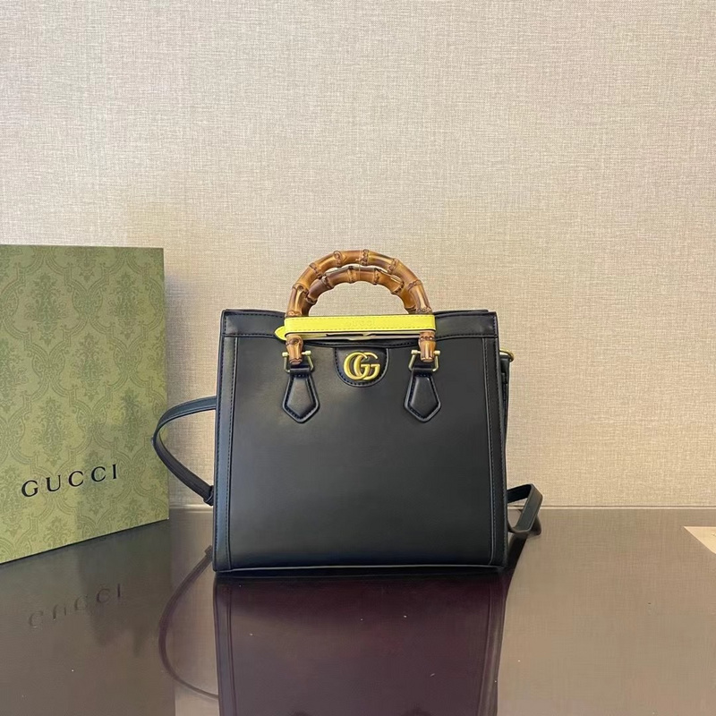 Gucci Women’s Black Leather Tote Bag with Bamboo Handles