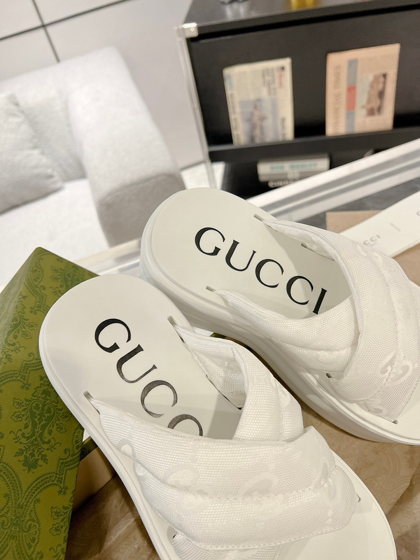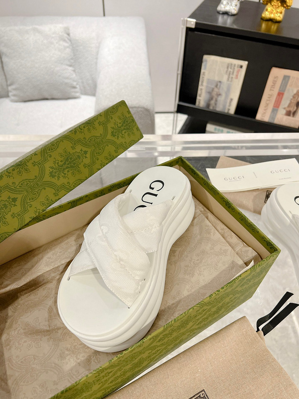 Gucci 最新款GG防水台厚底拖鞋 拉腿增高神器 yp一比一还原,所有细节 材质 舒适度 全部跟原版一样了 复刻度98%。面料:原版进口布料 大底:tpu材质 码数:35-40 Tx1298260