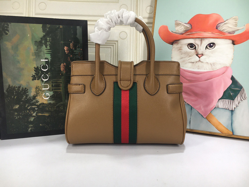 Gucci Women’s Leather Tote Bag with Buckle Closure Brown