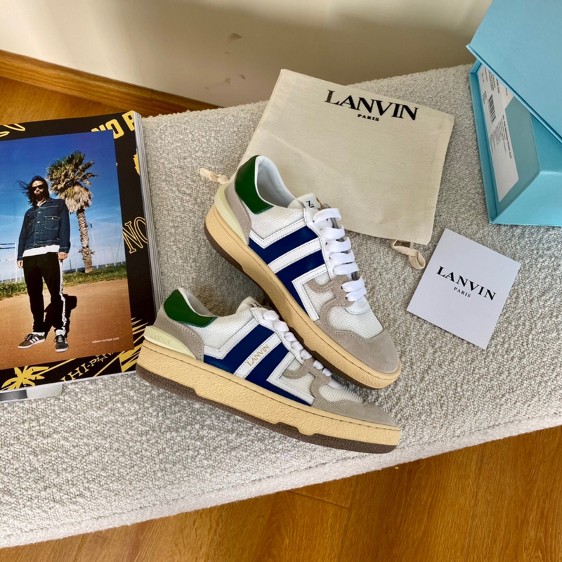 LANVIN/浪凡系带时尚休闲板鞋~高品质CLAY情侣系列 当季最新潮品 众多博主纷纷种草,入购原版开模定制,鞋面和大底马克线串线缝制不封边工艺,多种材质拼接组合设计,非常百搭时尚休闲穿搭,上脚舒适 自留推荐!鞋面牛皮+牛反绒+透气网内里垫脚牛皮独家原版开模清晰logo橡胶大底 情侣标准码35-44 TX1191310