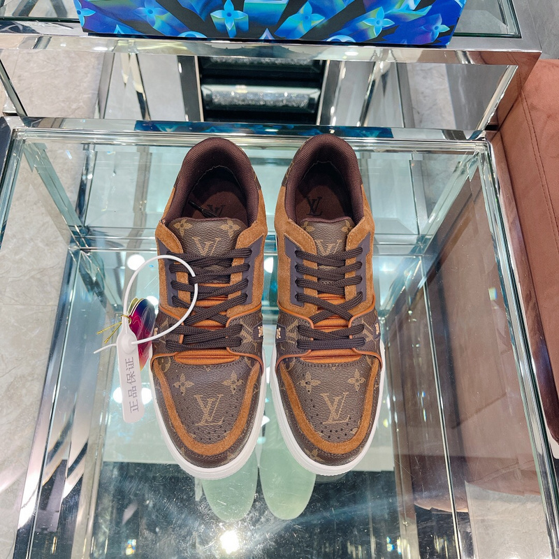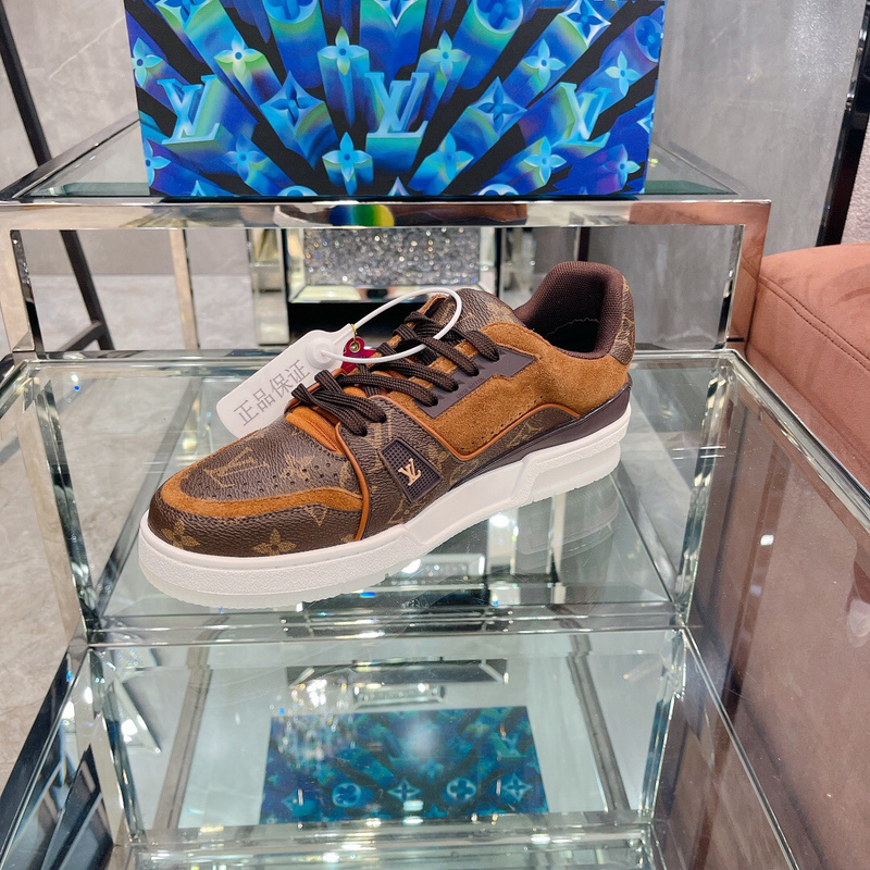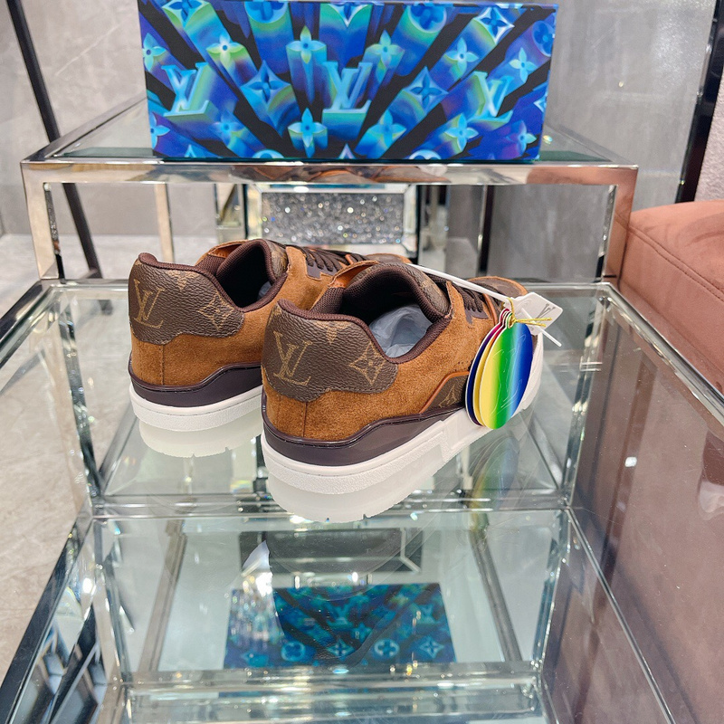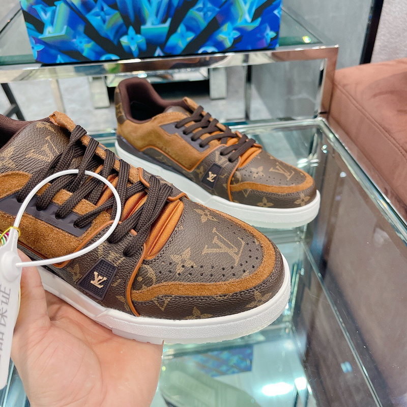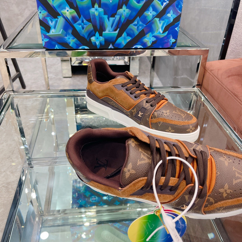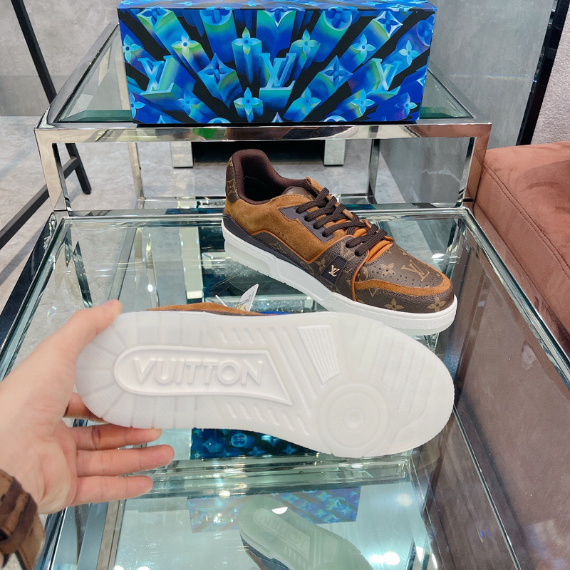 Louis Vuitton Brown Leather and Textile Low-Top Sneakers Men’s LV TRAINER