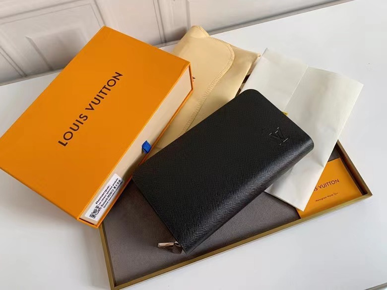 Louis Vuitton Double Zipper Stylish Black Long Leather Wallet