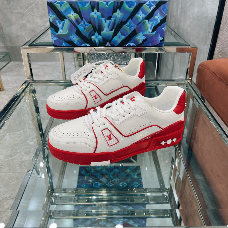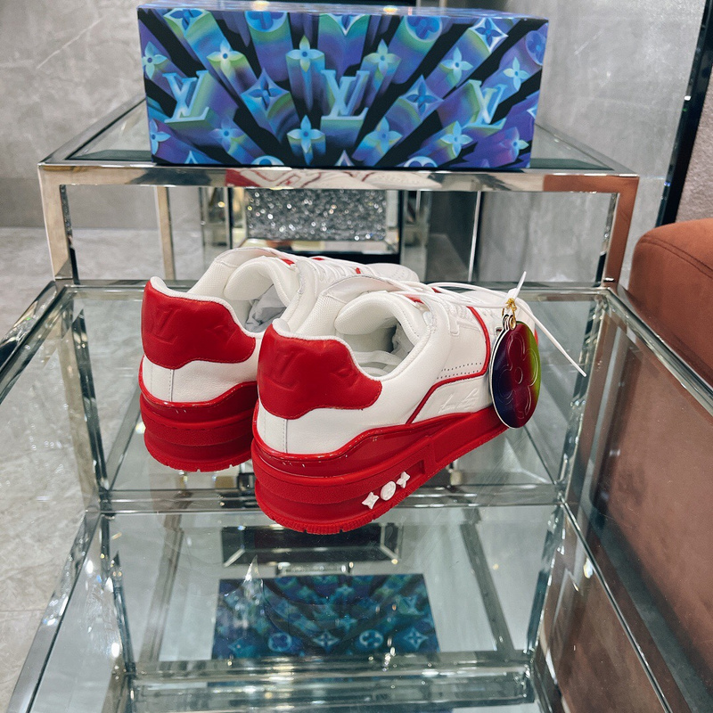 Louis Vuitton Leather and Textile Low-Top Sneakers Men’s LV TRAINER Red Bottom