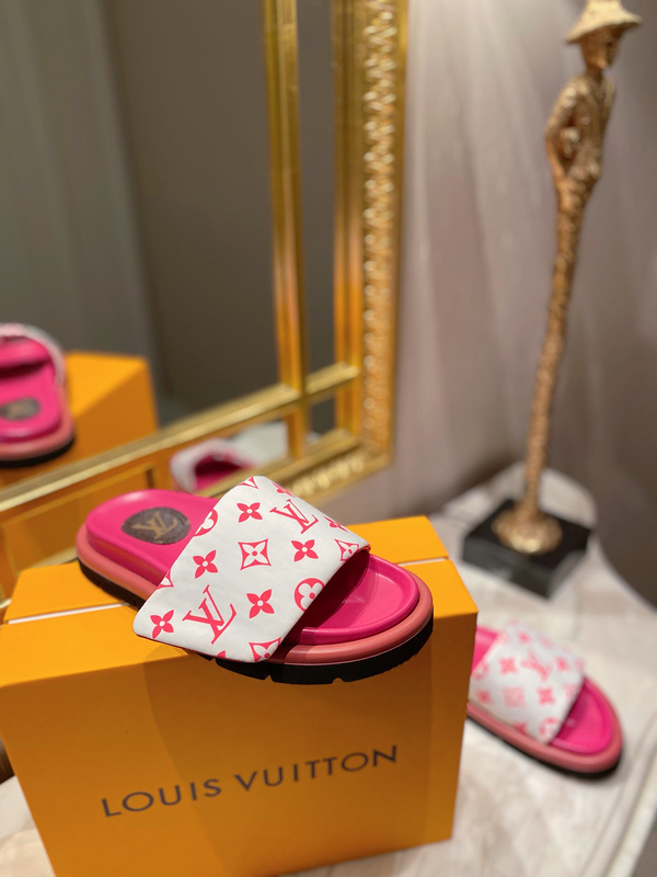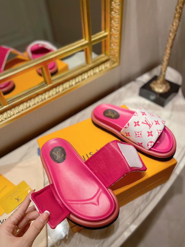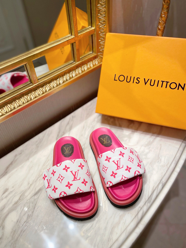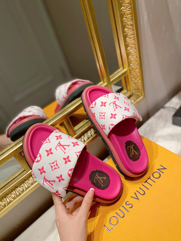 Louis Vuitton Pink Monogram Canvas Palm Slippers Couple Shoes