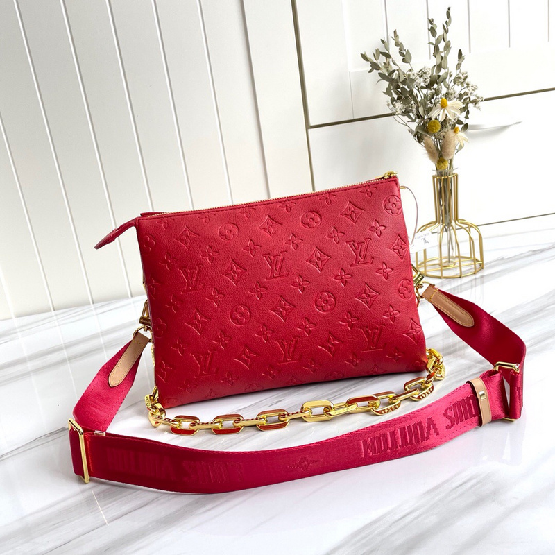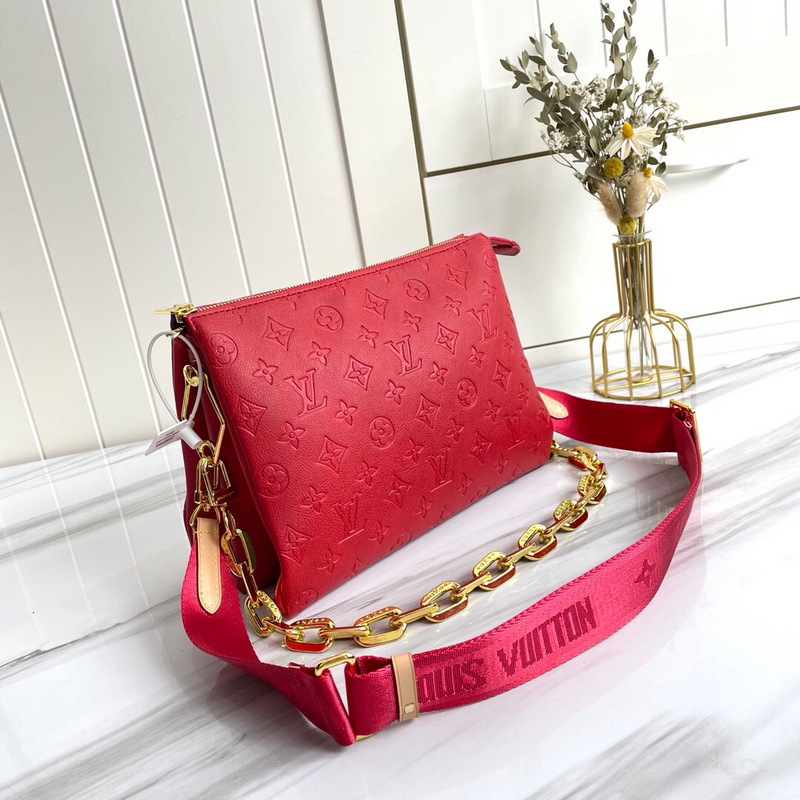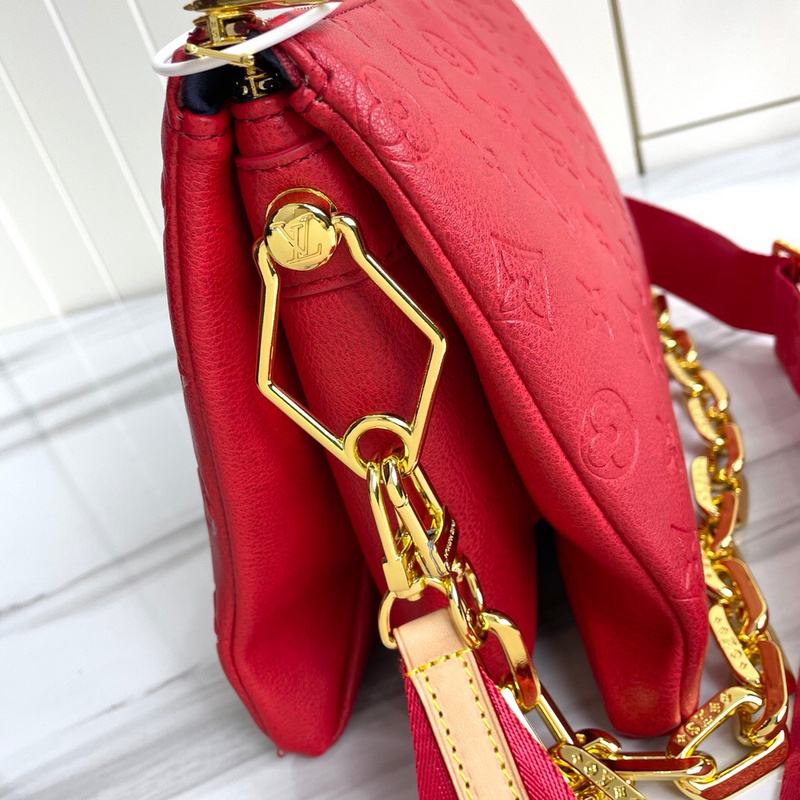 Louis Vuitton Red Leather Shoulder Bag ,Coussin Handbag for women