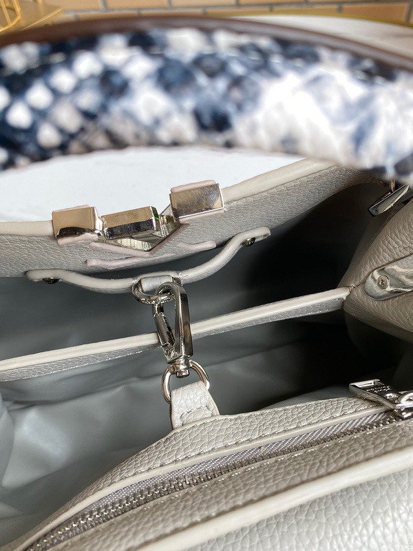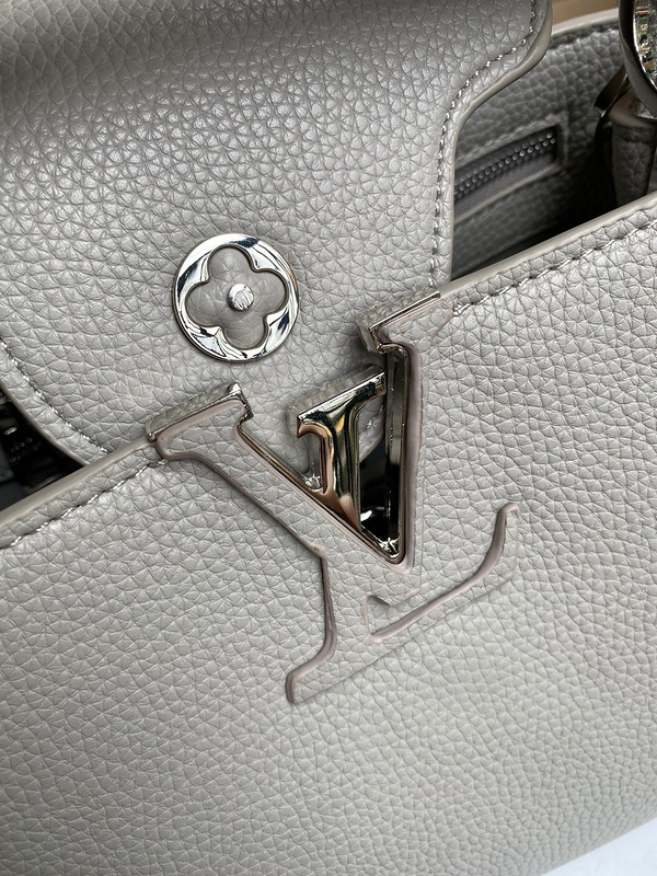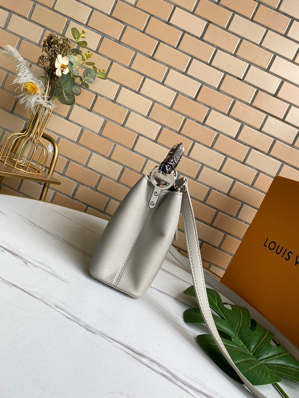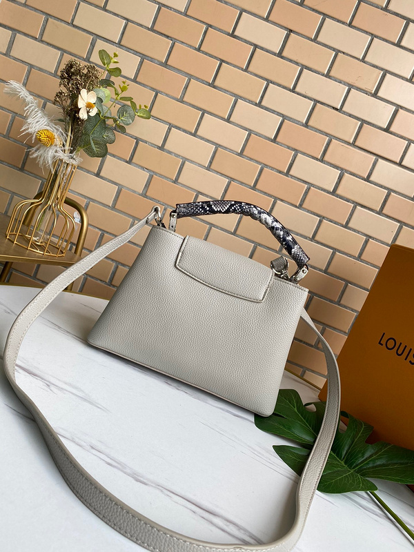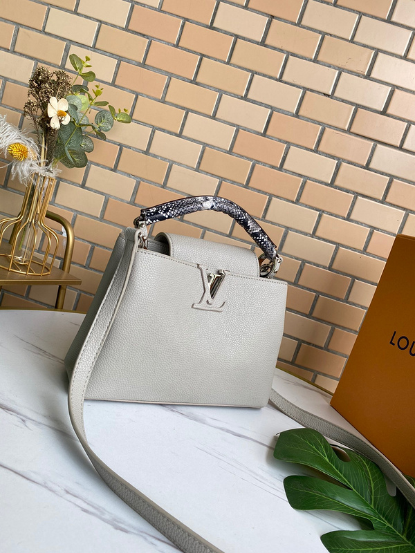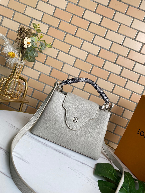 LV Capucines Women’s Grey Leather Handbag with Snake Skin Handle