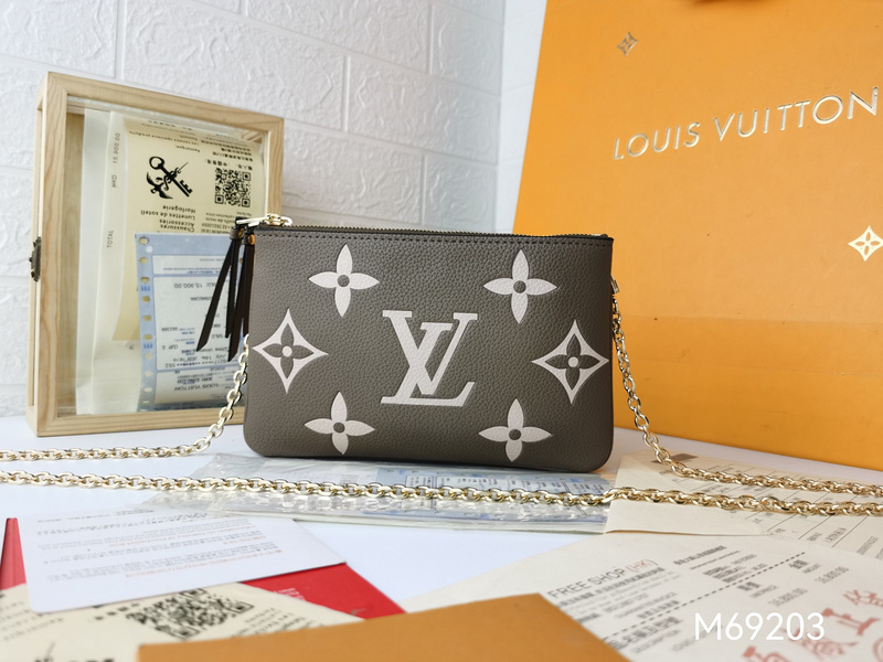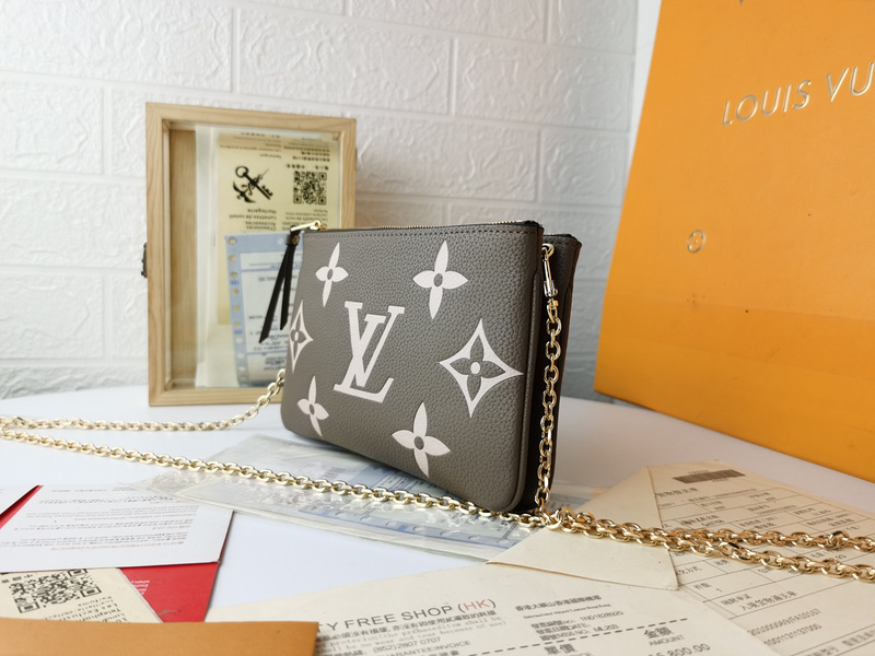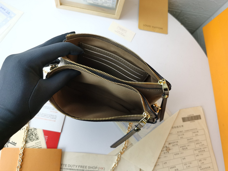 LV Double Zip Pochette Monogram Chain Pouch -2