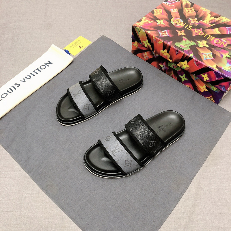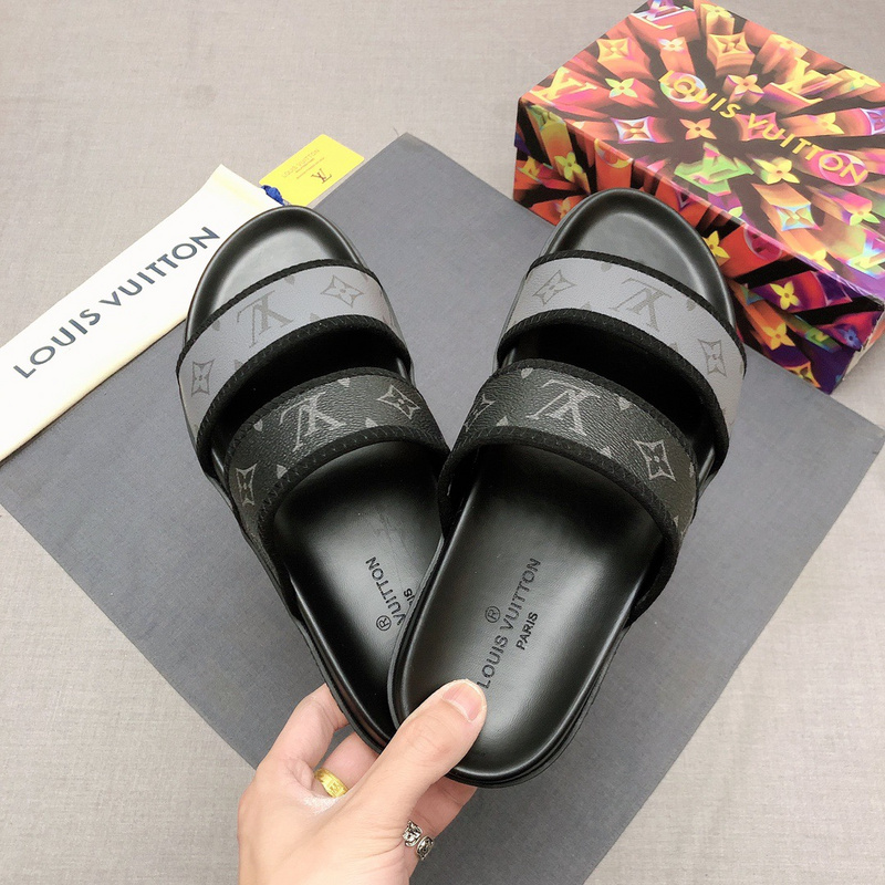 LV Men’s Leather Slides,Luxury Slippers Sandals LOV074