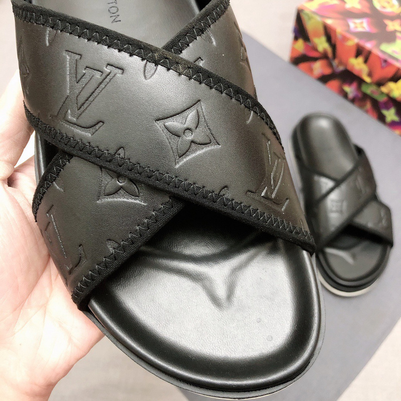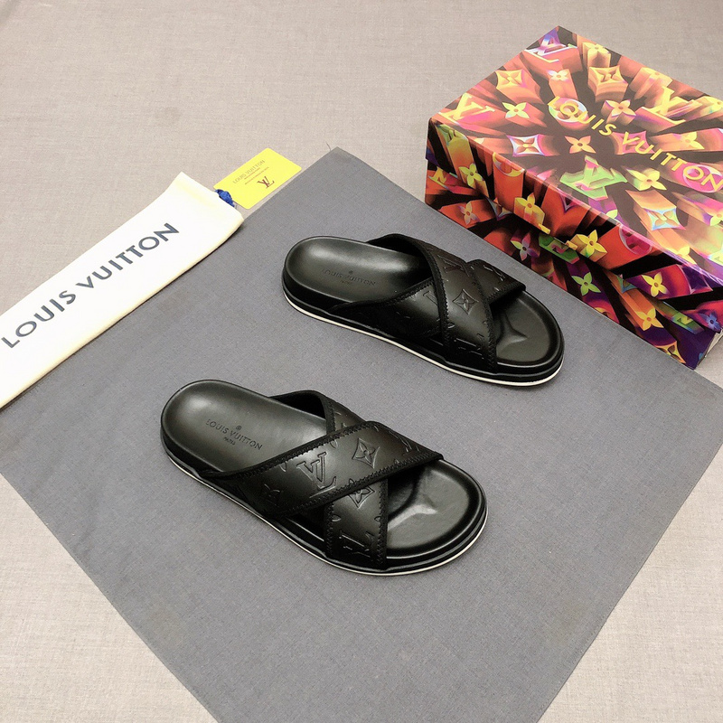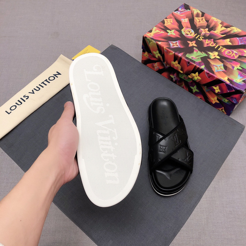 LV Men’s Leather Slides,Luxury Slippers Sandals LOV081