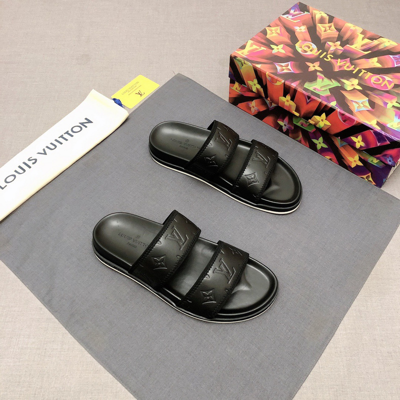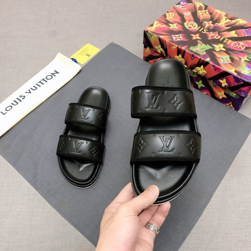 LV Men’s Leather Slides,Luxury Slippers Sandals LOV082