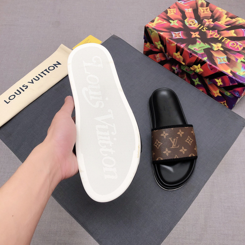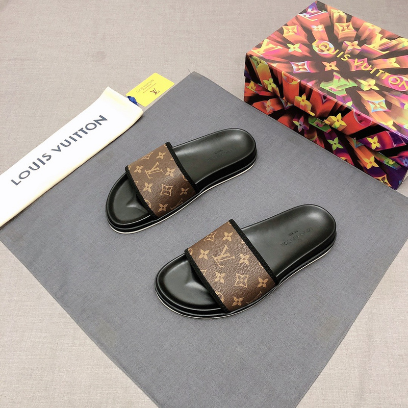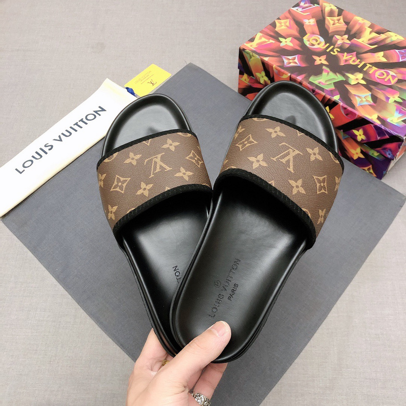 LV Men’s Leather Slides,Luxury Slippers Sandals LOV084