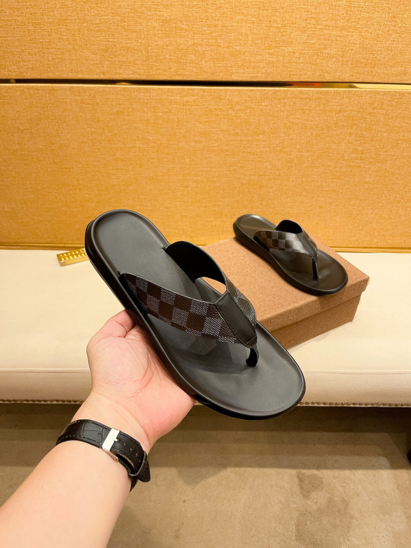 LV Men’s Monogram Leather Slides, Outdoor slipper Flip Flop -2