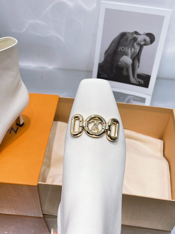 L✔️驴家urban twist系列 金属扣方头高跟短靴 🔺驴家2021年秋季系列新品上市此款Urban Twist女鞋对经典细高跟鞋型进行时尚升级,以柔滑的小牛皮鞋面搭配亮眼的金色金属方头头,刻有 L+V Circle 标识,凸显路易家品牌特质。 内里:羊皮/ ✔️鞋面:小牛皮/ ✔️鞋底:原版真皮大底✔️ 跟高:7cm 正码:35-39 ( 34.40 定做不退换) TX1255450