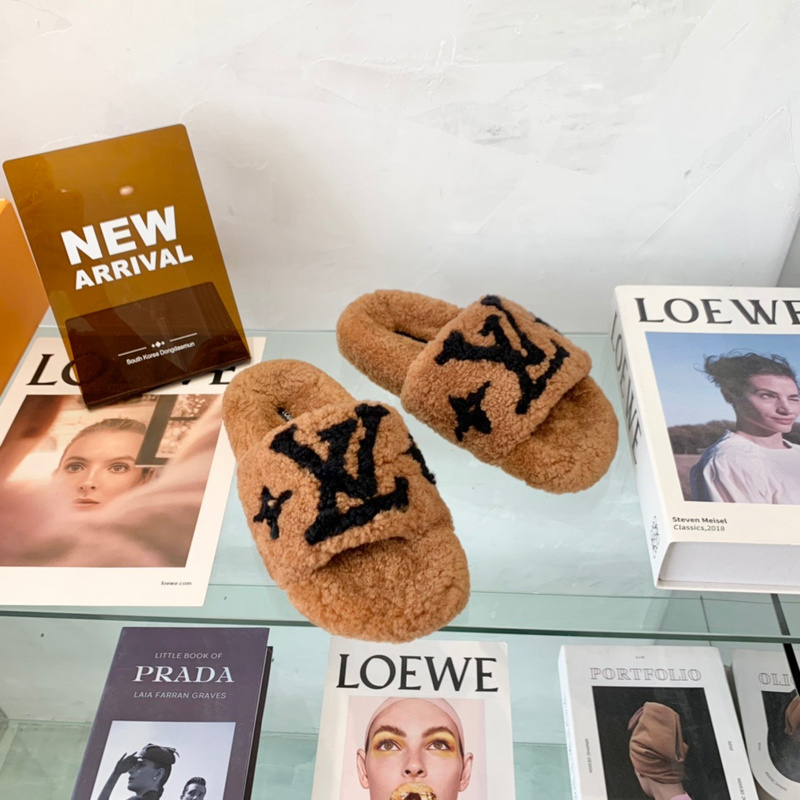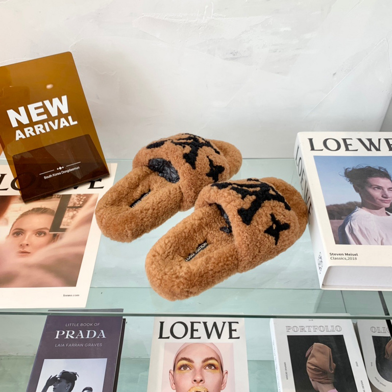升级版 LV 秋冬羊毛拖鞋 整鞋纯皮毛一体羔羊毛打造️鞋底是原版开模的防滑大底️码数35-40。 001280