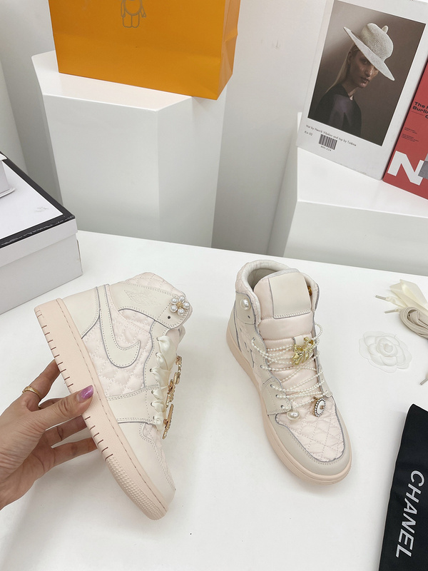 Nike x CHANEL AJ SNEAKER FOR WOMEN Pink Pearl Design Mid Heel