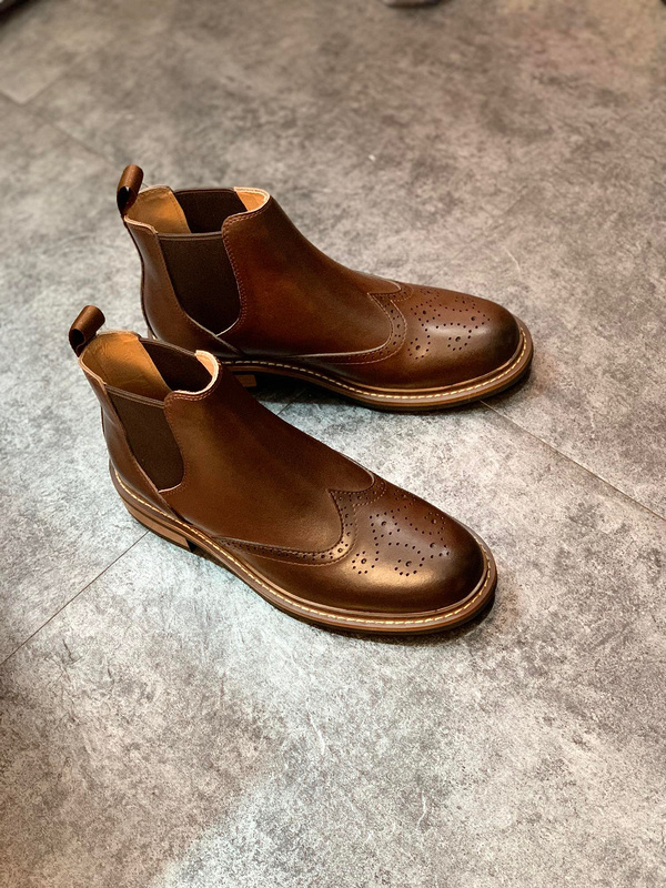 Prada Men’s Brown Leather Brogue Chelsea Boots