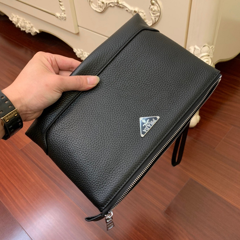 Prada Men’s Leather Clutch with Contrast Stitching-3