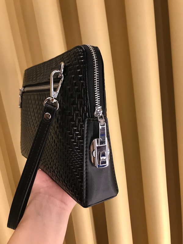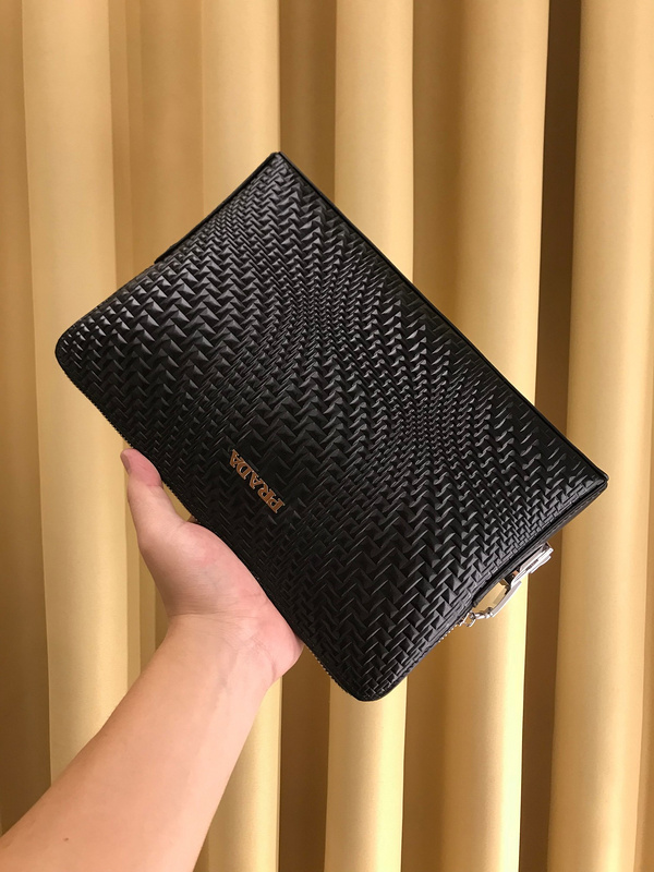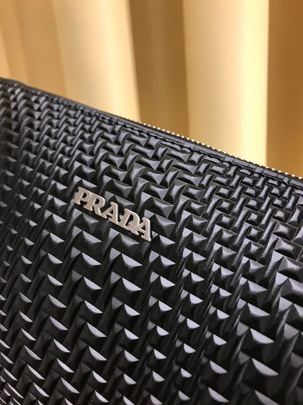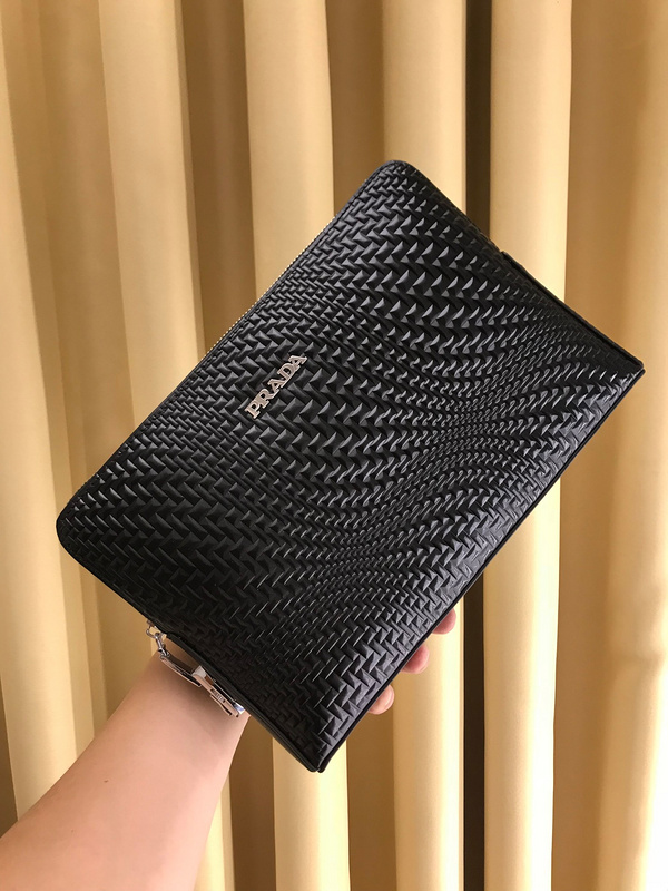 Prada Men’s Luxury Leather Clutch with Gold Hardware
