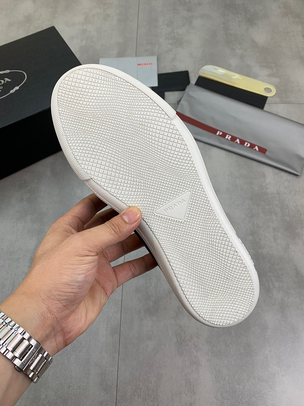 Description: Timeless and never out of style, the iconic Prada sneaker. Forward-thinking, versatile, and fashion-forward, this men’s sneaker is a private custom-made mold. The upper is crafted from calfskin, with 1:1 replica oil edge treatment, adding a touch of sophistication and boldness. Featuring imported calfskin lining with a calfskin insole, this shoe embodies high-end, eye-catching style with exceptional attention to detail. Ideal for those looking for the ultimate in fashion and comfort.