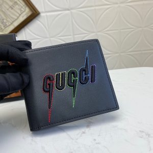Gucci Men’s Black Leather Bifold Wallet with Rainbow Logo $85.00