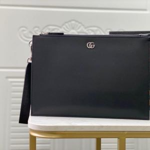 Gucci Men’s Black Leather Clutch Handbag with GG Logo -2