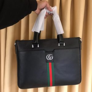 Gucci Men’s Black Leather Briefcase with Web Stripe Classic Design-5 $245.00