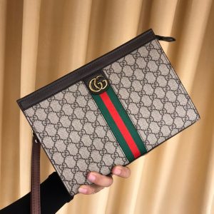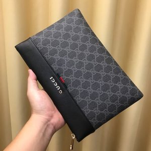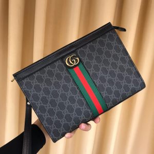 Gucci Men’s Black Leather Clutch with GG Pattern